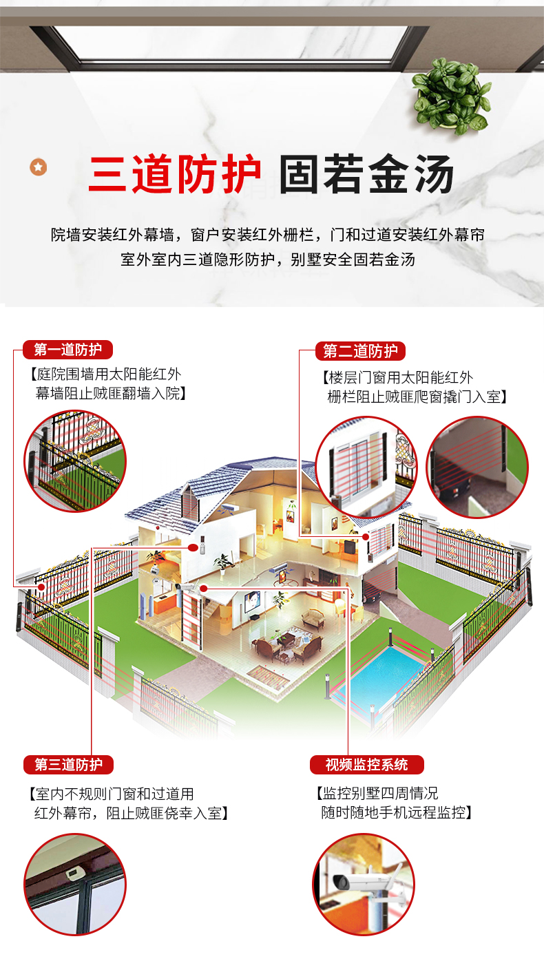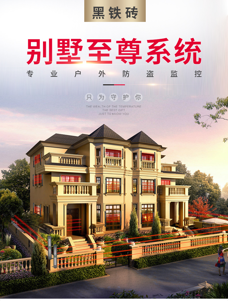 黑鐵磚安防 別墅安全系統 光能無線紅外對射 網上批發 工廠直銷 紅外對射式電子圍欄 周界報警系統 入侵系統 無線遠程報警 專業對射生產廠家 適用于別墅、工廠、學校、炸藥庫、智慧工地、加油加氣站、部隊等任何有報警需求的場所