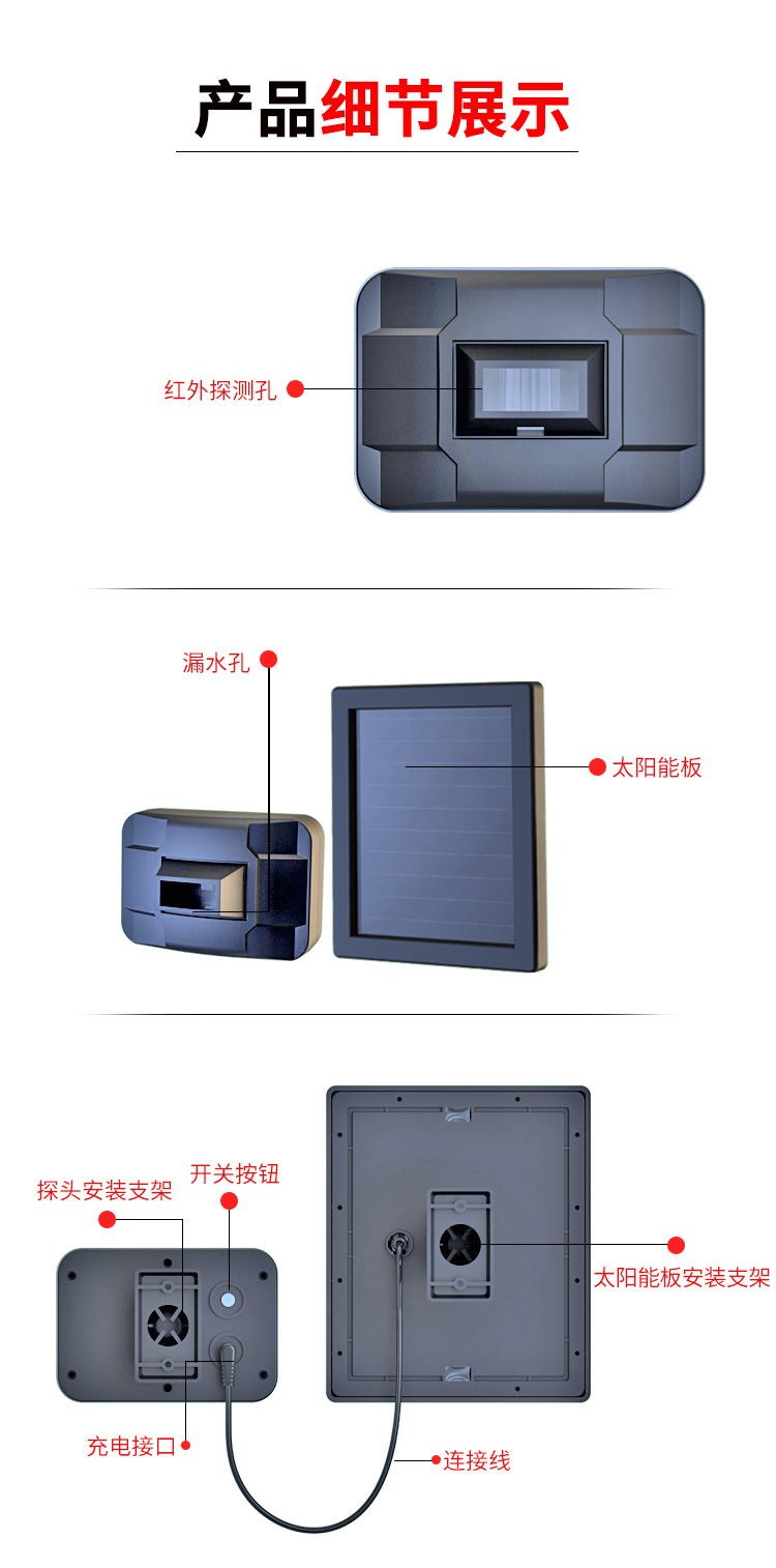 外部供電方式: 太陽(yáng)能電池板或DC5V-12V適配器可選