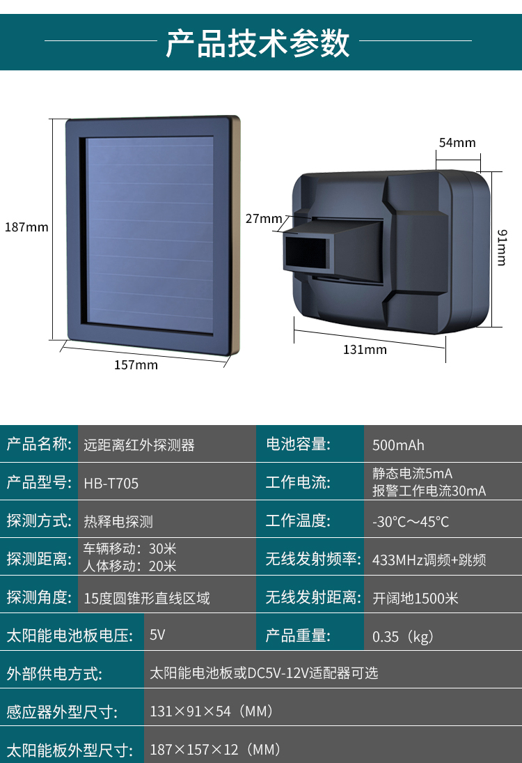 無(wú)線戶外探測(cè)器(分體式) HB-T705