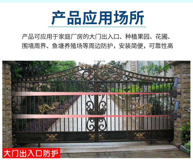黑鐵磚安防 別墅安全系統(tǒng) 光能無(wú)線紅外對(duì)射 網(wǎng)上批發(fā) 工廠直銷 紅外對(duì)射式電子圍欄 周界報(bào)警系統(tǒng) 入侵系統(tǒng) 無(wú)線遠(yuǎn)程報(bào)警 專業(yè)對(duì)射生產(chǎn)廠家  適用于別墅、魚(yú)塘、養(yǎng)殖場(chǎng)、工廠、學(xué)校、炸藥庫(kù)、智慧工地、加油加氣站、部隊(duì)等任何有報(bào)警需求的場(chǎng)所